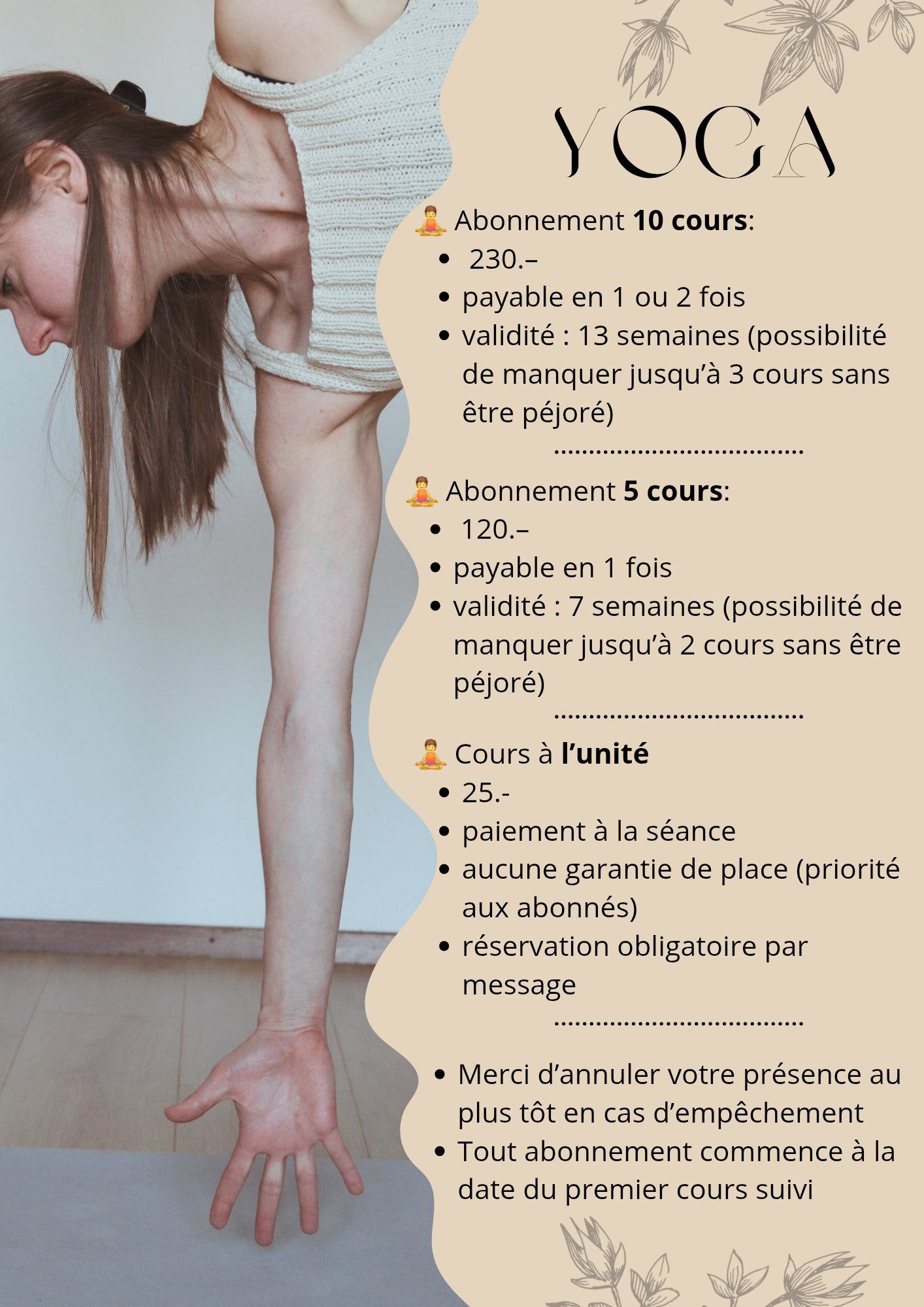 → Cours à l’unité si places disponibles ⌊ 25.-